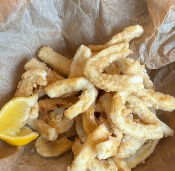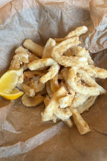 Skär bläckfisken i ringar. Dela dem om de är för stora.