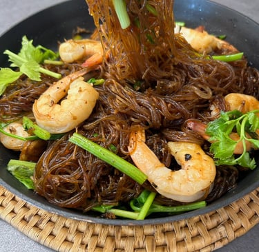 ÅNGADE RÄKOR MED GLASNUDLAR