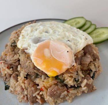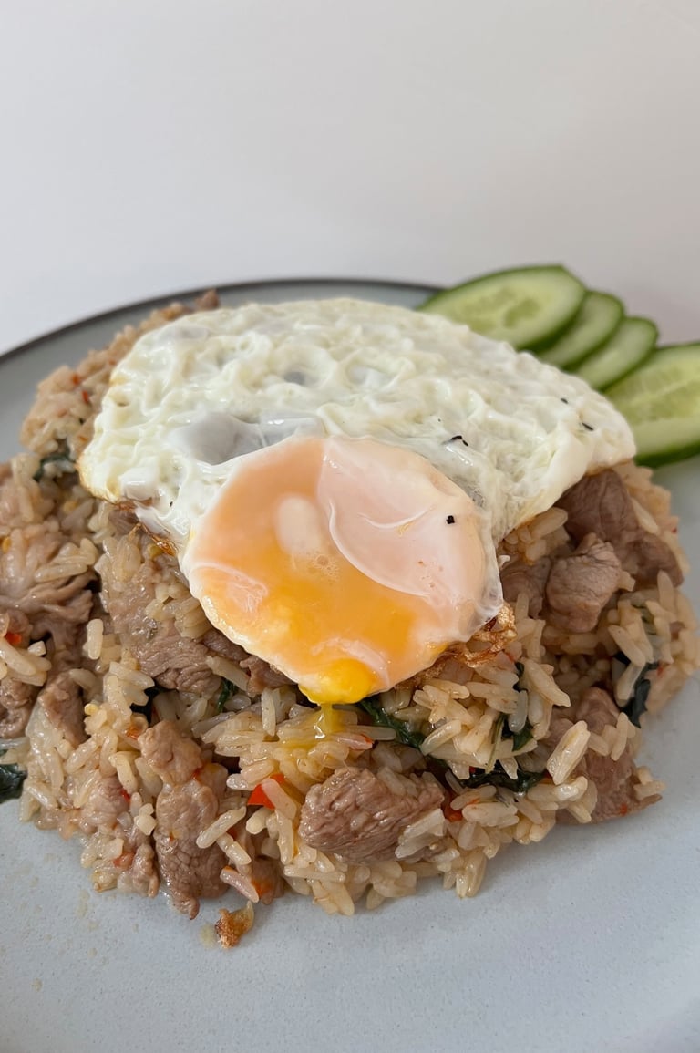 Stek ägg i en wokpanna och lägg sedan på tallriken