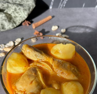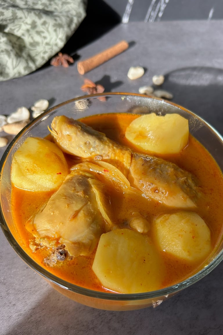 Lägg i kycklingbenen, potatisen, löken, vattnet, kanelstängerna och stjärnanisen. Sätt på locket och låt det sjuda på låg-medium värme i ca 40-45 minuter. Se till att kycklingen och potatisen blir genomkokta.
