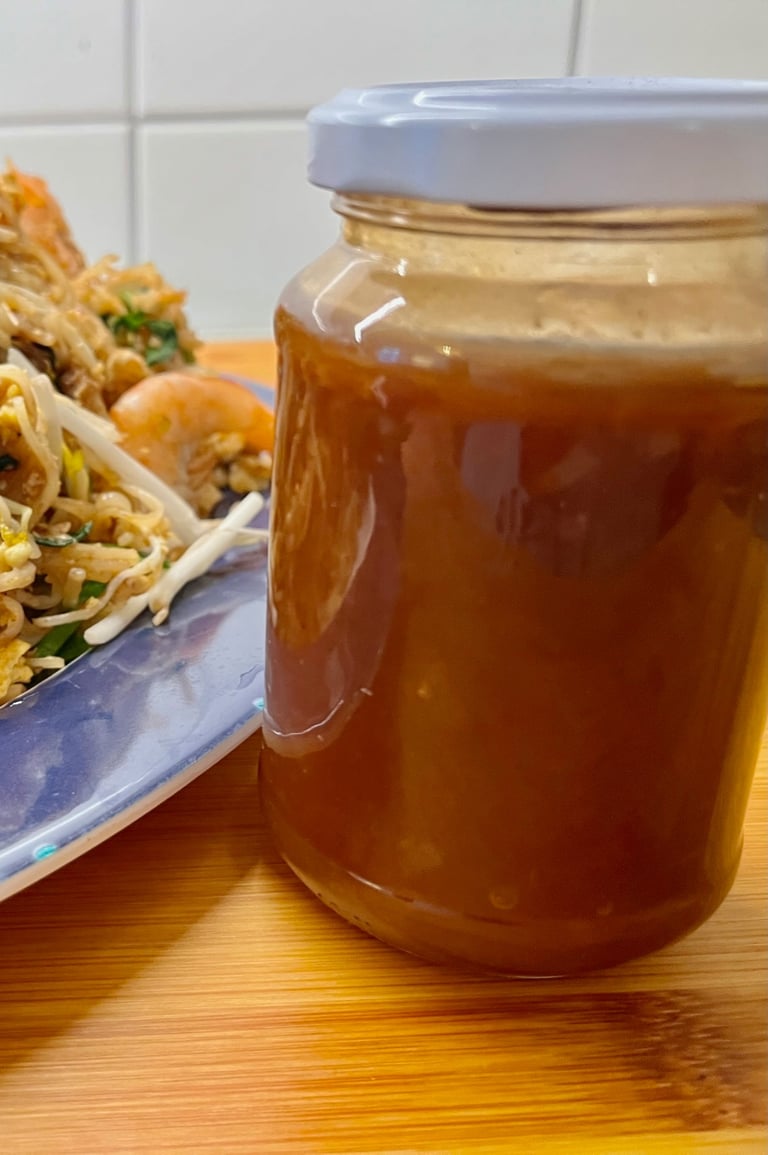 Pad thaisåsen är nu redo att användas eller förvaras i en burk i kylen (låt svalna först).