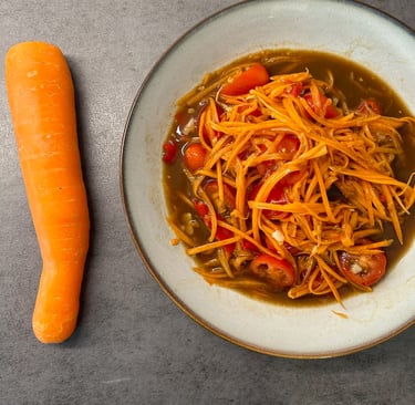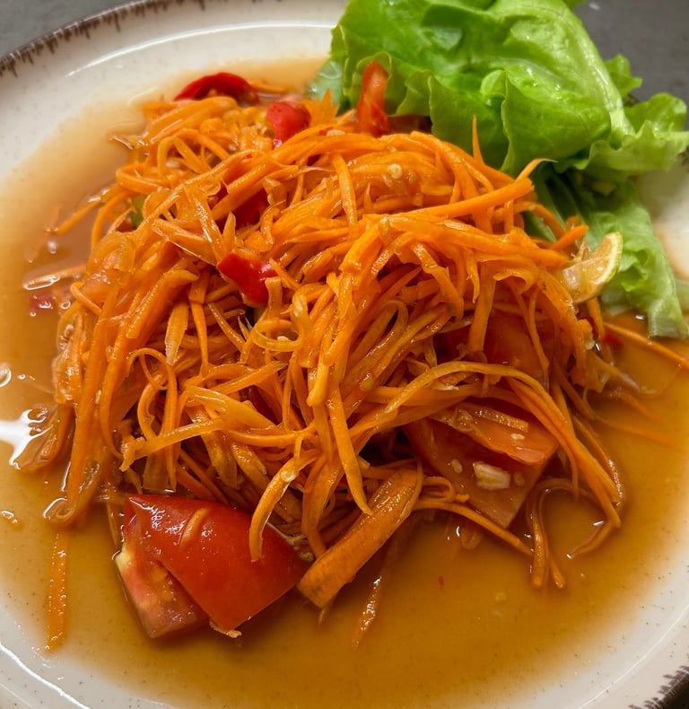 Vanligtvis brukar jag använda morot, gurka, zucchini och kålrabbi som ersättning. Dessa grönsaker kan ge en liknande konsistens och smakupplevelse i din Somtam-rätt. Så du behöver inte avstå från att njuta av den läckra smaken bara för att du inte har grön papaya till hands.