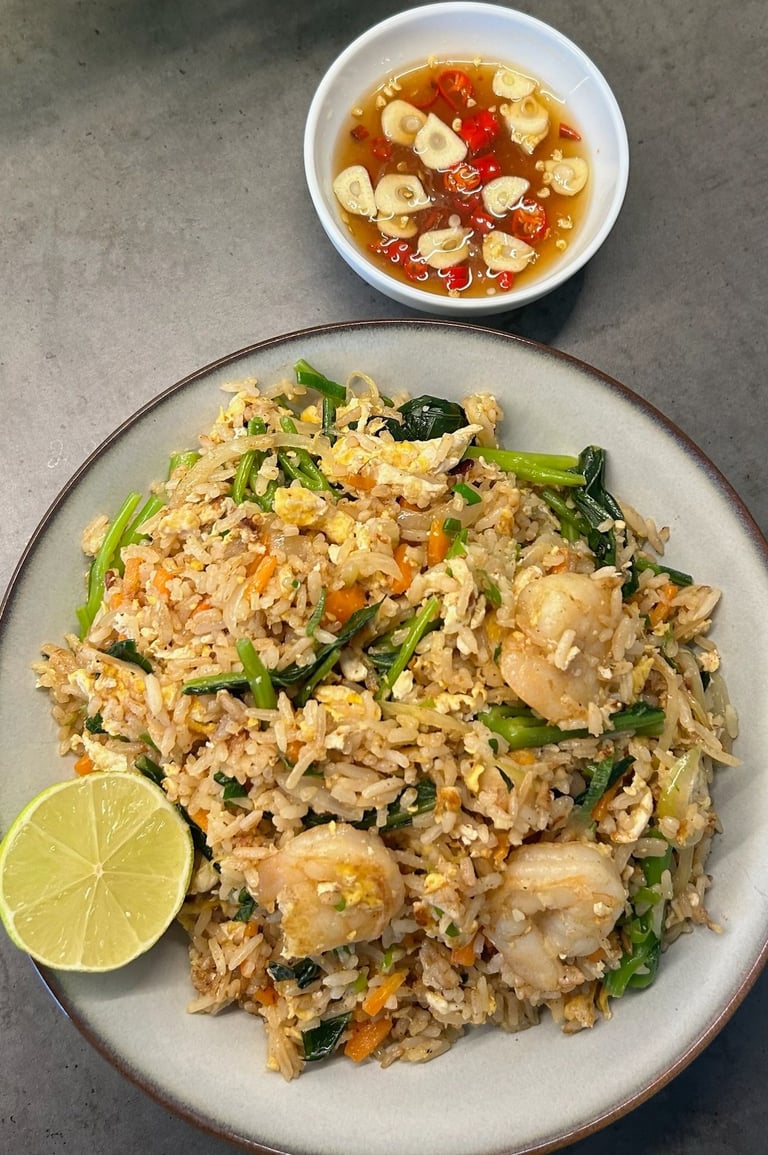 Blanda ihop fisksåsen, limejuicen, chilin och vitlöken och servera vid sidan av med friterat ris.