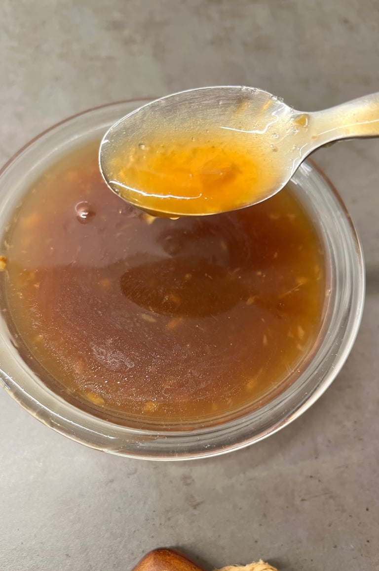 Häll vatten, sojasås i en kastrull eller en wokpanna. Lägg sedan socker, honung, ingefära, vitlökspulver, sesamolja och majsstärkelse. Rör om ofta på medelvärme i ca 5 minuter.