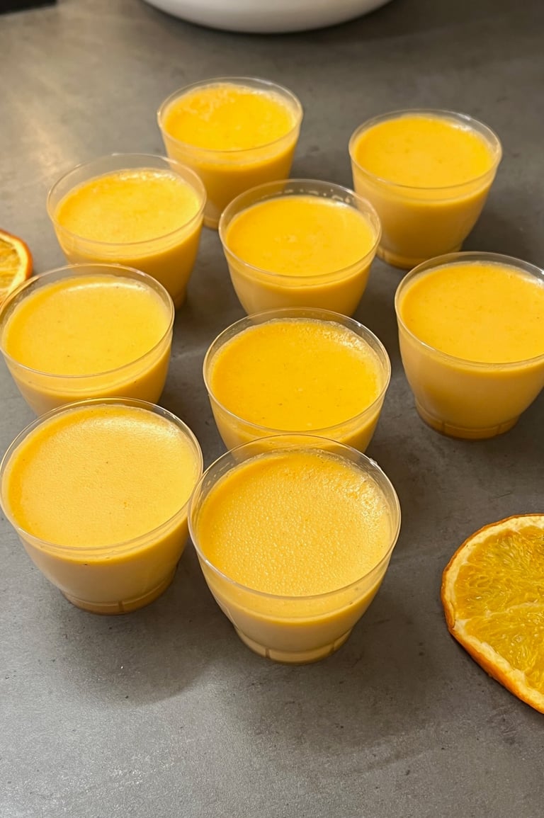 Koka upp vispgrädde och strösocker i en kastrull. Tillsätt sedan urkramat gelatin, vaniljpulver och mjölk-teet. Rör tills allt gelatin lösts upp.